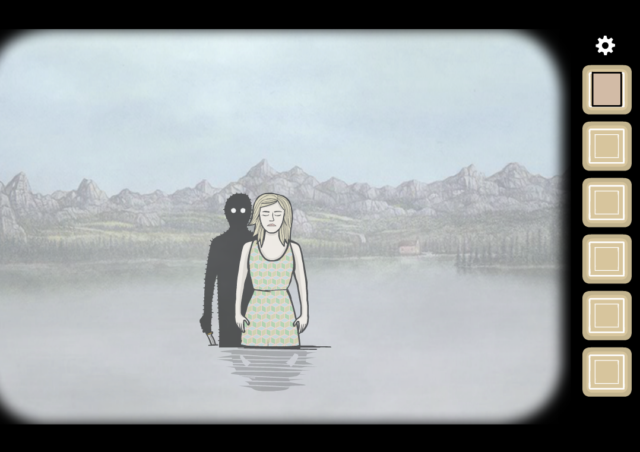 女性の目の向きと反対側にドラッグし続けると、黒い影が出てくる