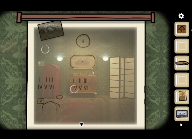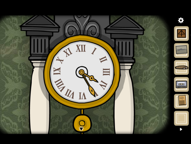 時計のある棚をクリックし、時計の針を動かす(短い針がⅣ、長い針がⅤ)