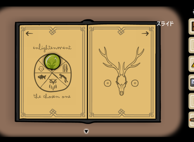 TV横の棚の下段、左側をクリックし、スライドとTVで確認した順に再びマークを並び替える。
