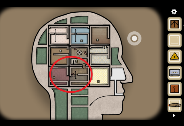 全体マップとエリアの切り替えは、頭の中の絵が飾ってある所でしかできない。