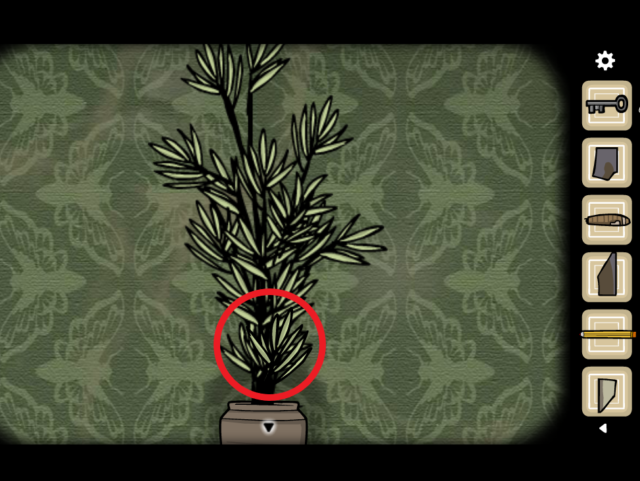 観葉植物をクリック。下部分の枝をハサミでカットし、小枝を入手する(若干絵が浮いている箇所)