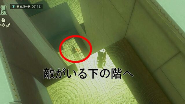 5. 右側から下の階に降りる。敵が2体いるので撃破する。