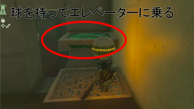 15. 球を持ったら近くにあるエレベーターで上へ行き、穴にセットする。