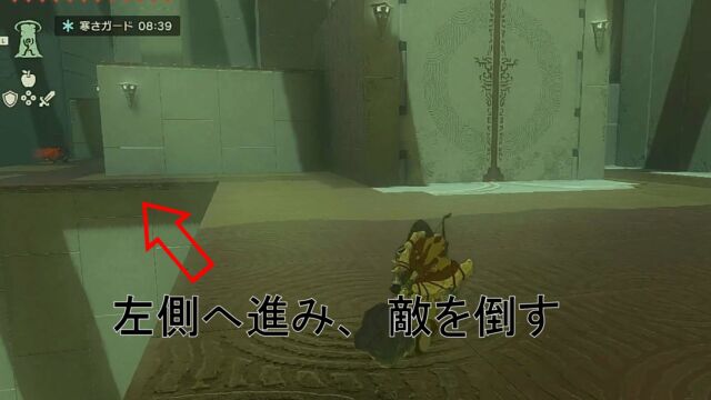 1. スタートから向かって左側に進む(目前の扉はウルトラハンドで開けるが、進めない)。敵がいるので撃破し、先にある上の足場からトーレルーフで上へ。