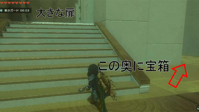 7. 宝箱をとる場合:降りた所の扉から右側奥にある。