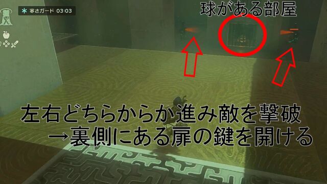 13. 鍵をとった場所からトーレルーフで上へ。落ちてきた階の裏手に出るので、敵を撃破するなどして球がある所の扉を鍵で開ける。