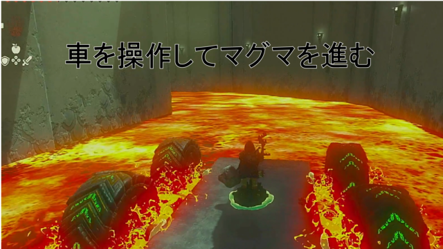 1. ハンドル付きの車に乗って操作し、マグマの道を進んでいく。
