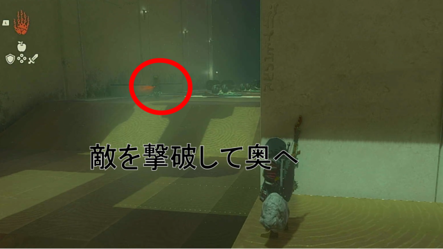 5. 1から進んできた左側、敵がいる方へと進み敵を撃破する。