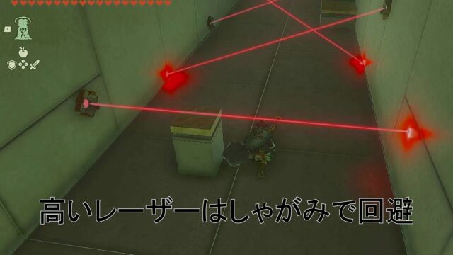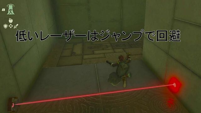 ロケット付きの盾を持っていれば、最初のレーザーゾーンをスキップ(飛び上がり、上の足場をつたって進める)できます。