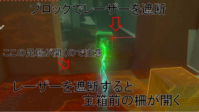 石板盾などでレーザーを遮断すると、近くにある足場が開いて進めないようになっています。