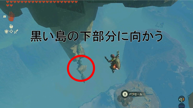 4. 簡単に行く方法:黒い島の一番下(画像部分)にパラセールで移動。