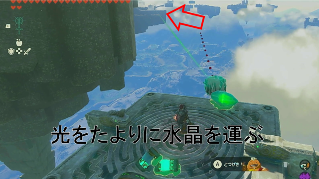 10. 光がさす方を目安に、水晶を祠まで運ぶ。