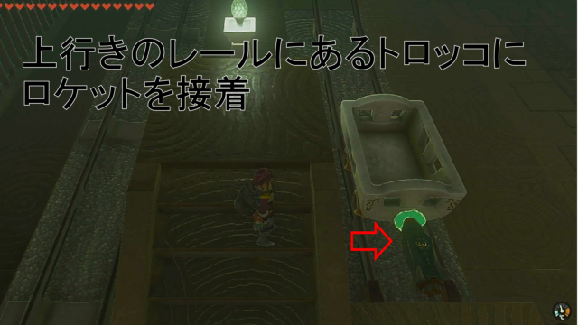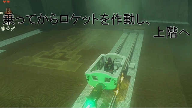 5. トロッコに乗りロケットを作動。ロケットの威力で上まで駆け上がる。