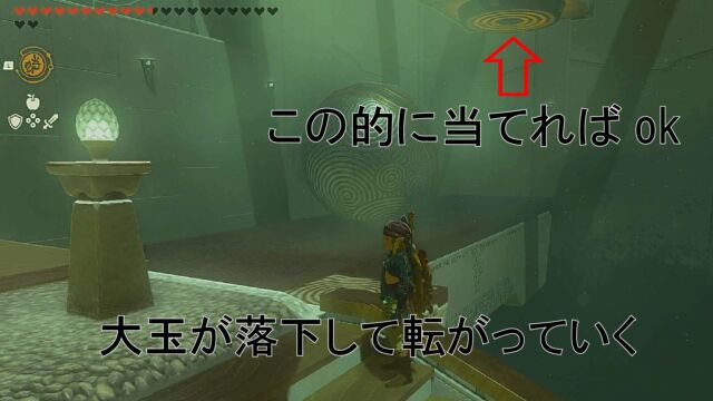 反動で一旦下がった足場に逆再生をかけ、上がる時の衝撃を利用して大玉を的に当てます。