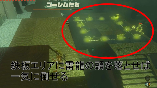 一旦周囲のゴーレムは無視して、雷龍の頭を取りに行くのがおすすめ。