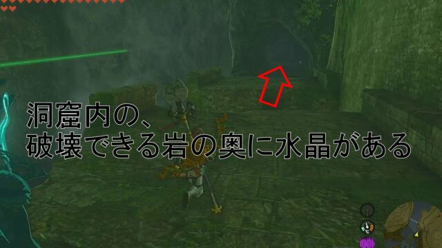 4. 滝に向かって右側から通じる洞窟内に水晶がある。