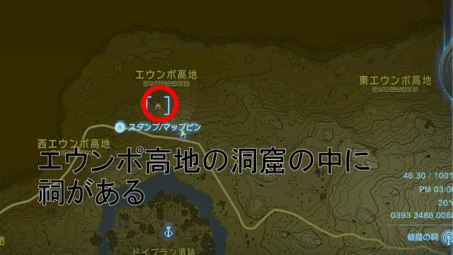 1. 祠にたどり着くまでが試練。祠は”エウンポ高地の洞窟”にある。