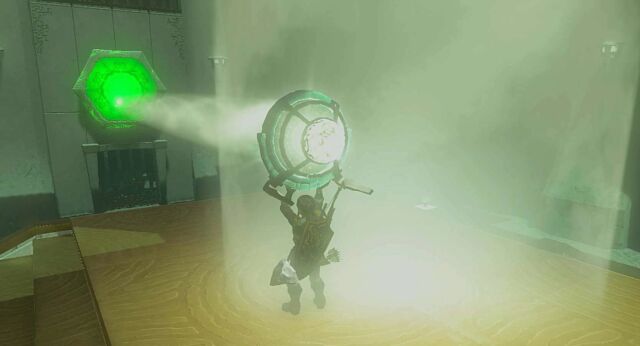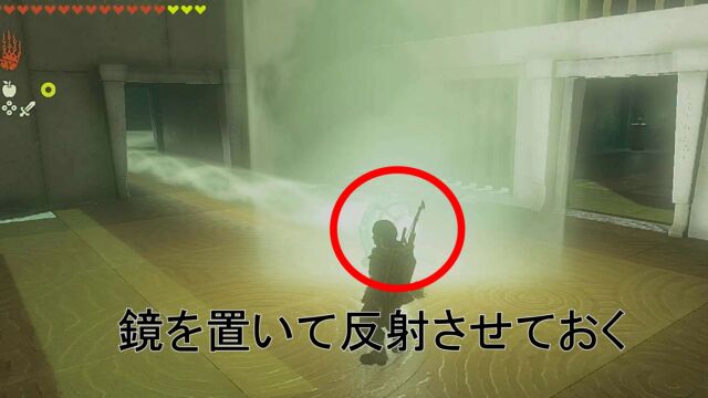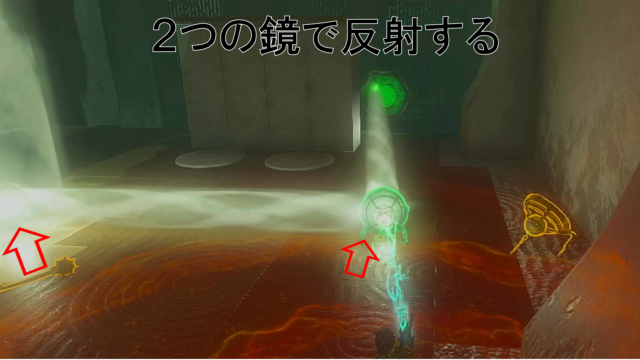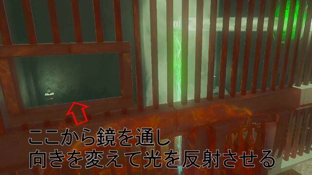 鏡で光を反射し、的が緑色になるまで当てれば道が開きます。