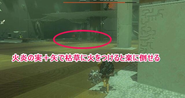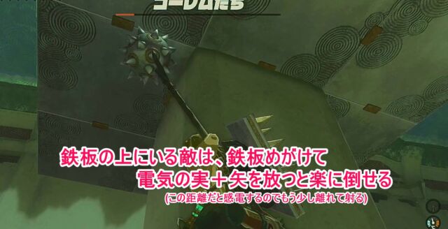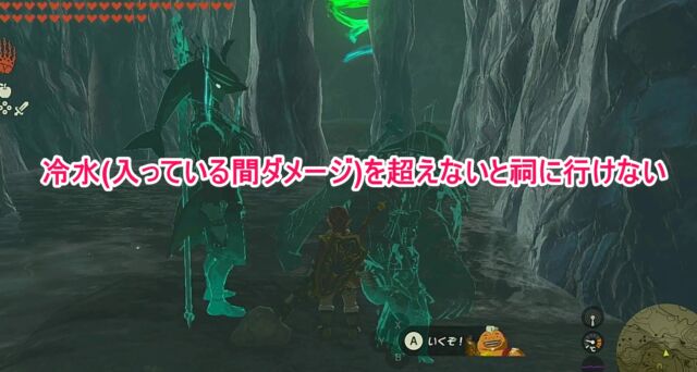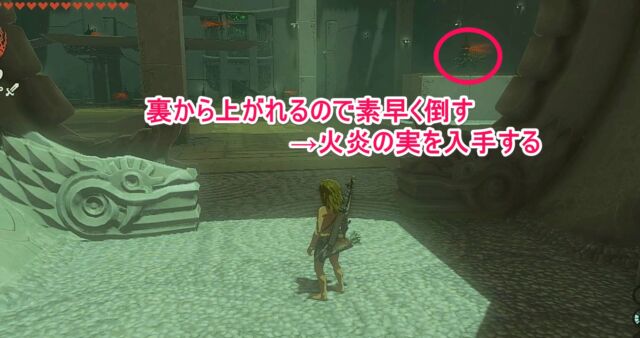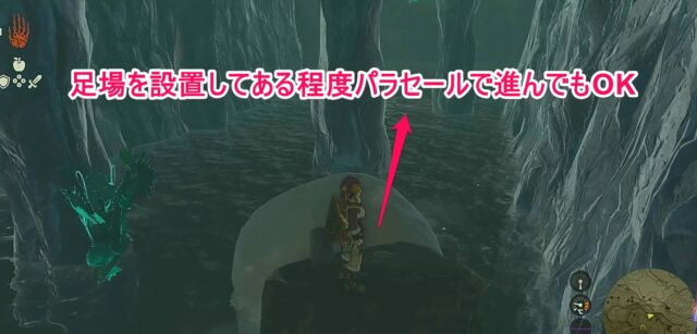 また、近くに落ちてある空島の足場などを持ってきて、パラセールでできるだけ祠まで行く作戦もあります(多少ダメージはくらいますが、致命傷にならない程度でたどり着けます)。