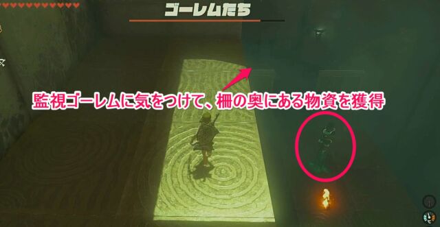 監視ゴーレムはウルトラハンドで分解できるほか、矢などで衝撃を与えると停止できます。